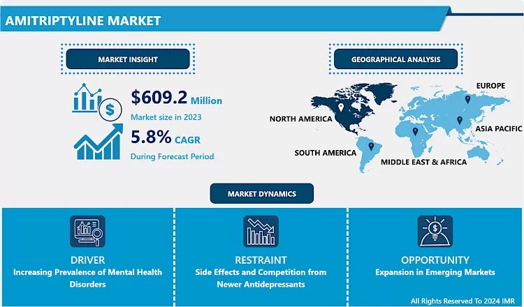 Introspective Market Research (IMR) today released its comprehensive report on the Global Amitriptyline Market. According to the analysis, the market was valued at USD 609.2 million in 2023 and is projected to reach USD 1,011.9 million by 2032, growing at a compound annual growth rate (CAGR) of 5.8% from 2024 to 2032.