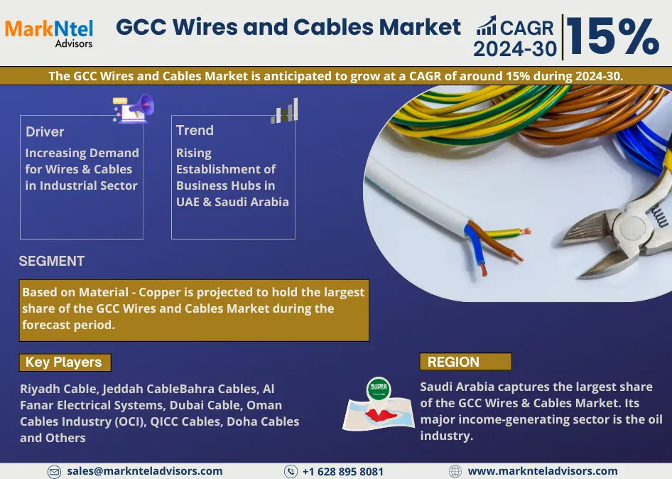 MarkNtel Advisors, a leading market research and consulting firm, has announced the release of its latest study titled GCC Wires and Cables Market Research Report: Forecast (2024–2030). This report provides a detailed assessment of the GCC Wires and Cables Market, covering its evolving dynamics, emerging trends, key growth drivers, major challenges, and competitive landscape.