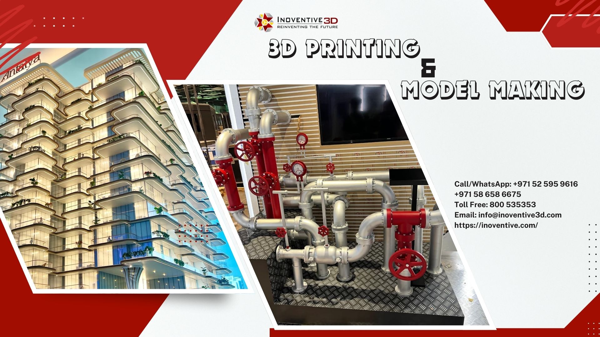 If you’re searching for premier services in “3D printing Dubai” or “model making Dubai”, Inoventive 3D offers both depth and breadth of capability. Their fusion of state-of-the-art additive fabrication and high-craft model making makes them a strong choice for any design-centric, presentation-driven or prototype-heavy project in the region. Please feel free to contact us for any further assistance. Call/WhatsApp: +971 52 595 9616 | +971 58 658 6675 | Toll Free: 800 535353 | Email: info@inoventive3d.com | https://inoventive.com/